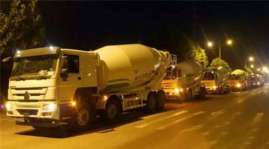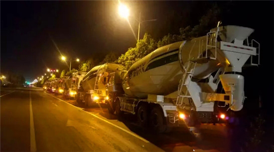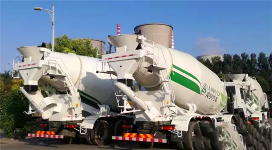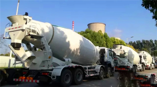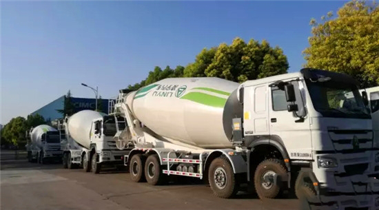 廠門(mén)口又停了一批靚麗的攪拌車(chē)。