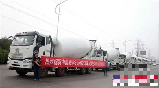 今年,受宏觀調控的影響,混凝土行業回暖,運輸需求增加,該客戶計劃增車。雖然有諸多廠家的推介,但終還是選擇了高性價比的解放底盤和中集凌宇上裝的攪拌車,并且一次性采購30臺,合同金額達1500多萬。