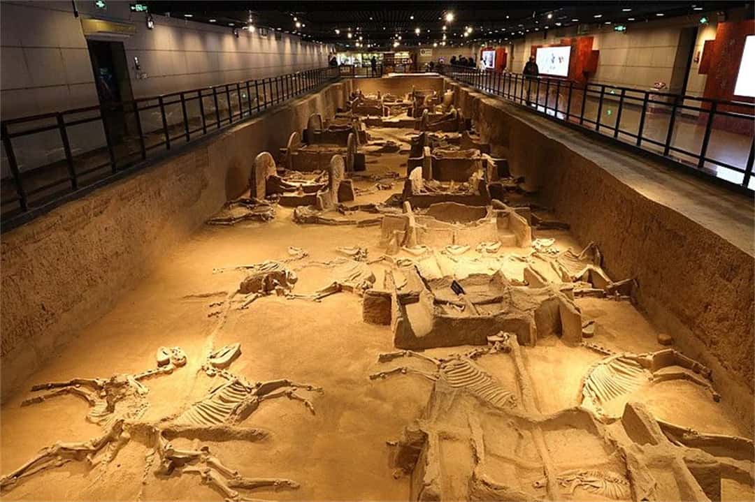 洛陽周王城天子駕六博物館,位于市中心的東周王城廣場,是一座展示東周時期王城、王駕和王器等的專題博物館,原址保護展示著東周時期的大型車馬坑。