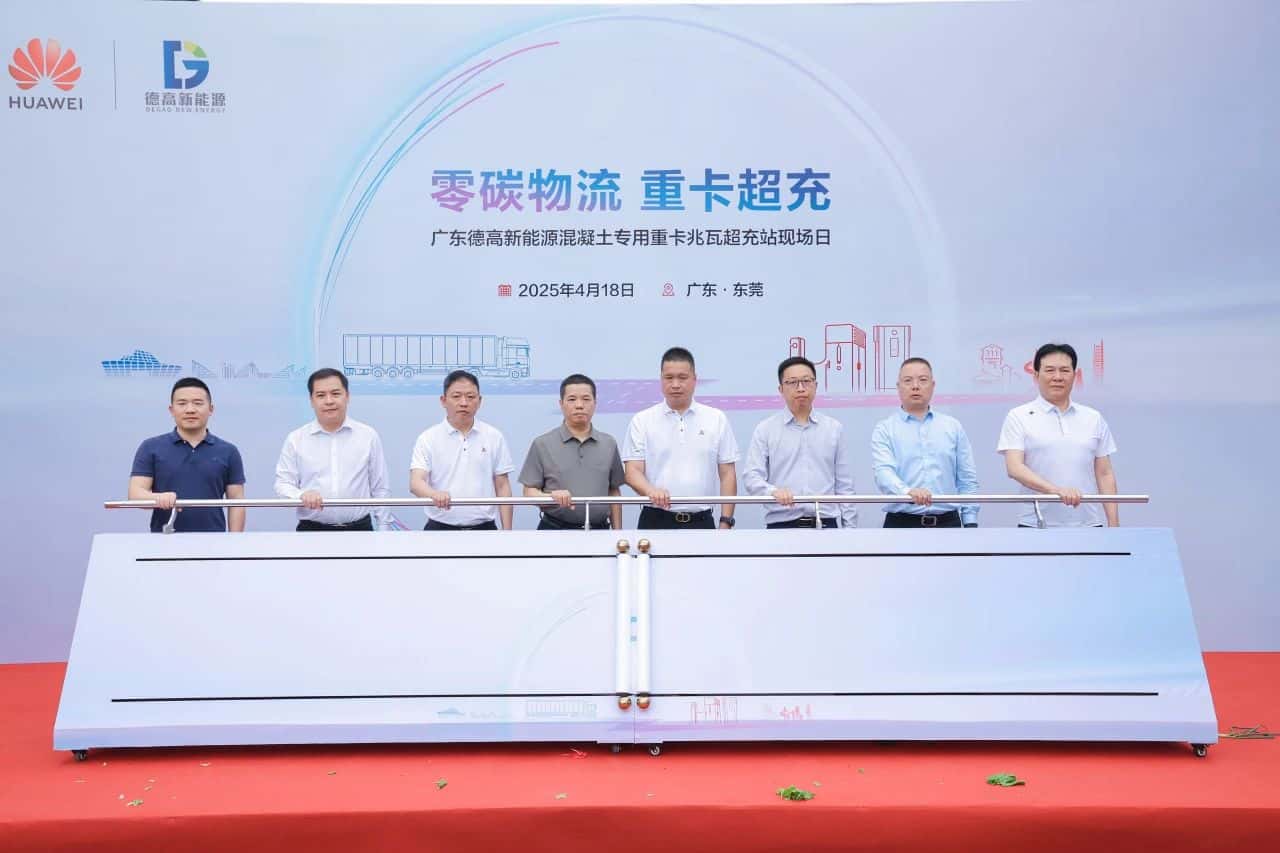 而本次合作,匯聚了多方行業巨頭。華為智能充電網絡領域總裁王志武、東莞市德高新能源有限公司總經理劉全發(同時擔任東莞生態園混凝土有限公司總經理)、東莞市新能源汽車產業協會會長林永森,秘書長韓成鋼、一汽解放粵閩地區部總經理程濤、中集車輛DTB攪拌車業務集團華南戰區司令吳傳名等嘉賓齊聚現場,共同見證這一重要時刻。各方的攜手,恰似璀璨星辰匯聚,必將照亮綠色基建的前行之路,共同開展行業發展的新藍海。