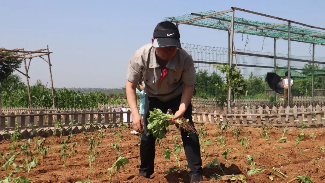 同志們分工協作,在有經驗的老同志指導和示范下,依次開展松土、起壟、插秧、澆水、培土等工作。汗水滴灑在泥土里,歡聲笑語回蕩在空氣中。活動中,還有不少黨員帶著孩子來到現場,讓祖國的下一代在了解種菜過程的同時,體驗勞動果實的來之不易。