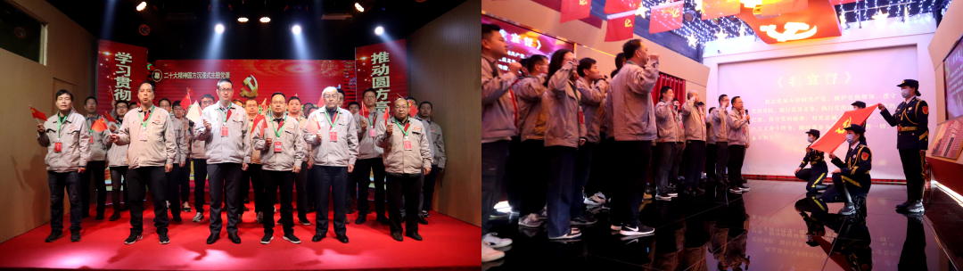 在工作人員的講解下,大家認(rèn)真聆聽(tīng)圓方集團(tuán)“六課教育”、“四五”創(chuàng)新工作模式、“五新”非公黨建工作方法,以及其他非公黨建新體系、新機(jī)制,深刻領(lǐng)悟到“黨組織就是靠山”、“黨建也是生產(chǎn)力”。在二十大精神沉浸式主題展館,大家走進(jìn)長(zhǎng)廊廳,通過(guò)欣賞舞蹈、唱紅歌、誦讀二十大精神、現(xiàn)場(chǎng)答題、重溫入黨誓詞等互動(dòng)環(huán)節(jié),感受到一堂“網(wǎng)紅薛書(shū)記”帶來(lái)的生動(dòng)黨課。